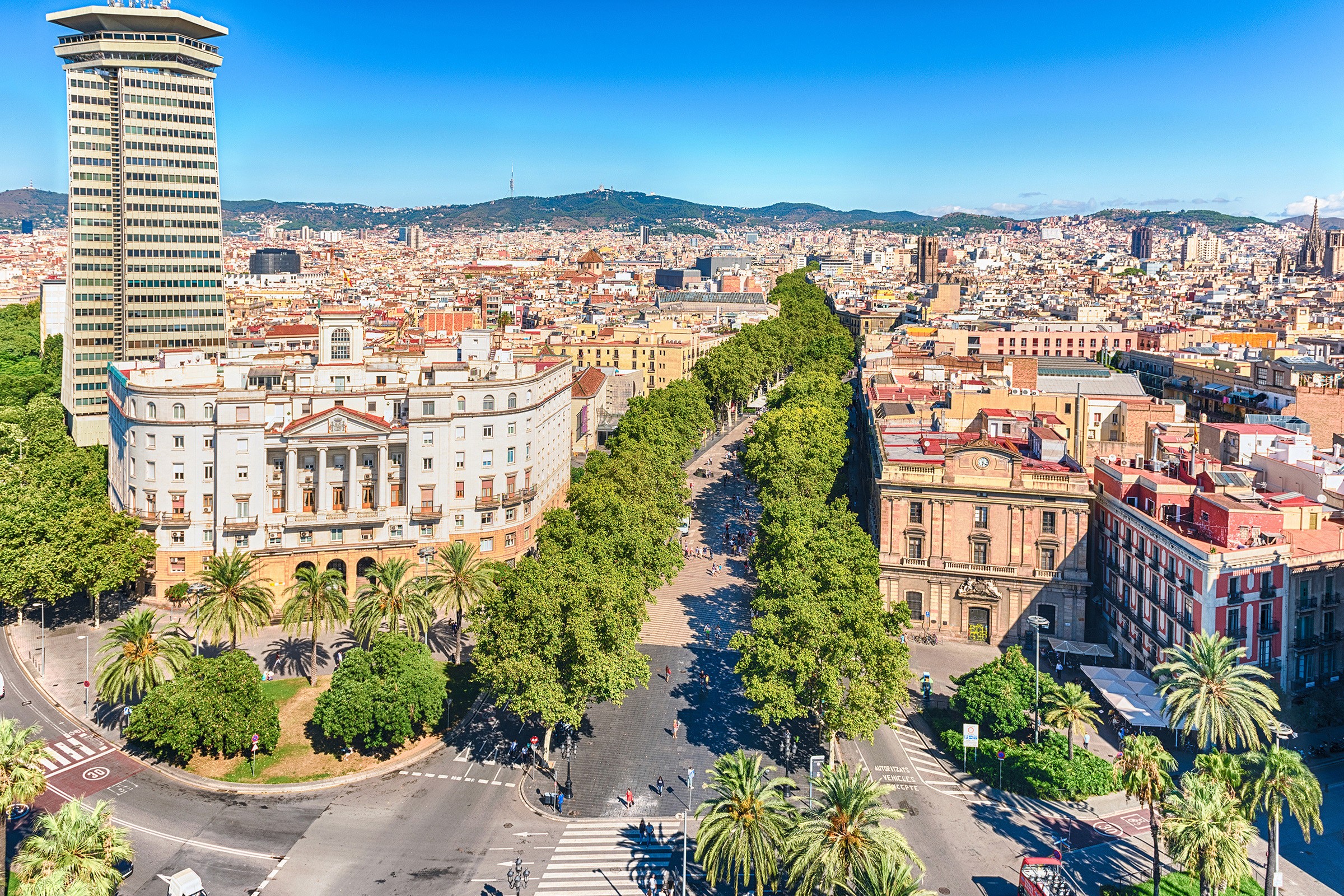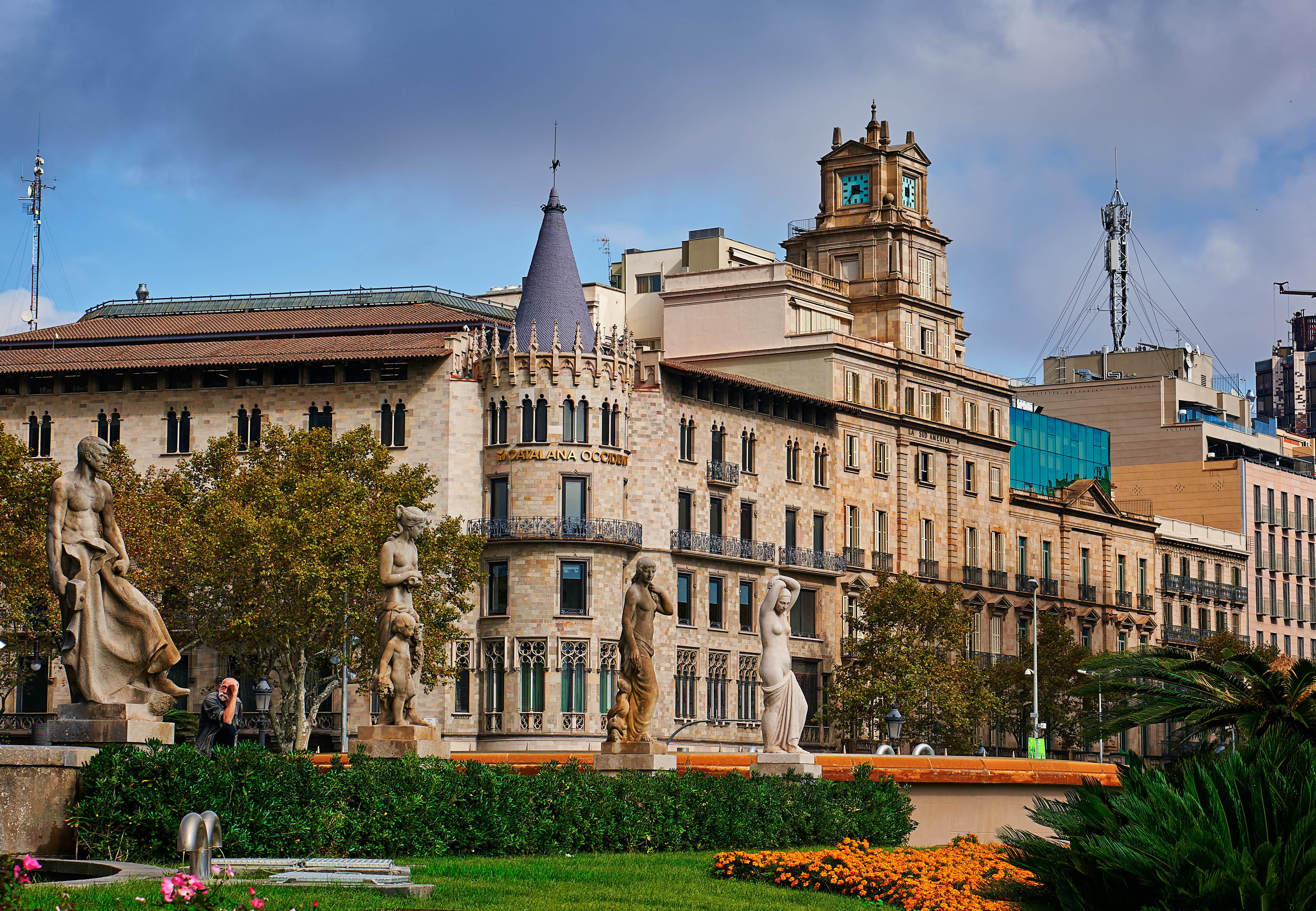A large plaza at the center of Barcelona near the Gothic Quarter and the 13th-century Barcelona Cathedral.